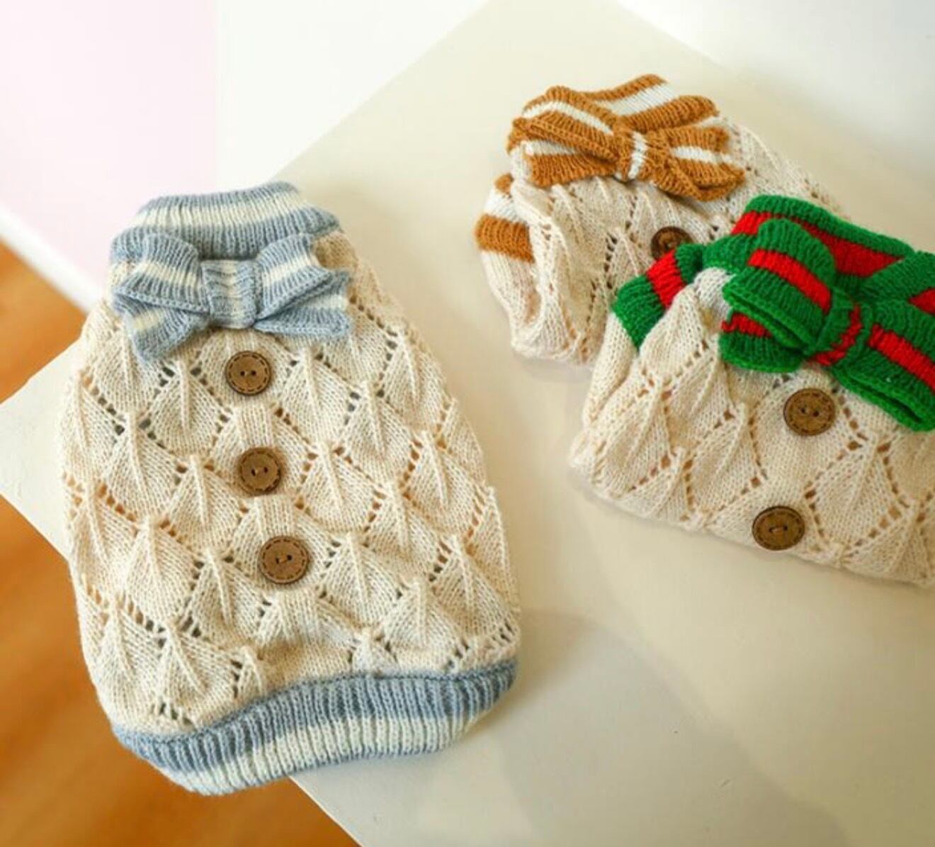 【ふんわり可愛い♡リボンニット ペットウェア】