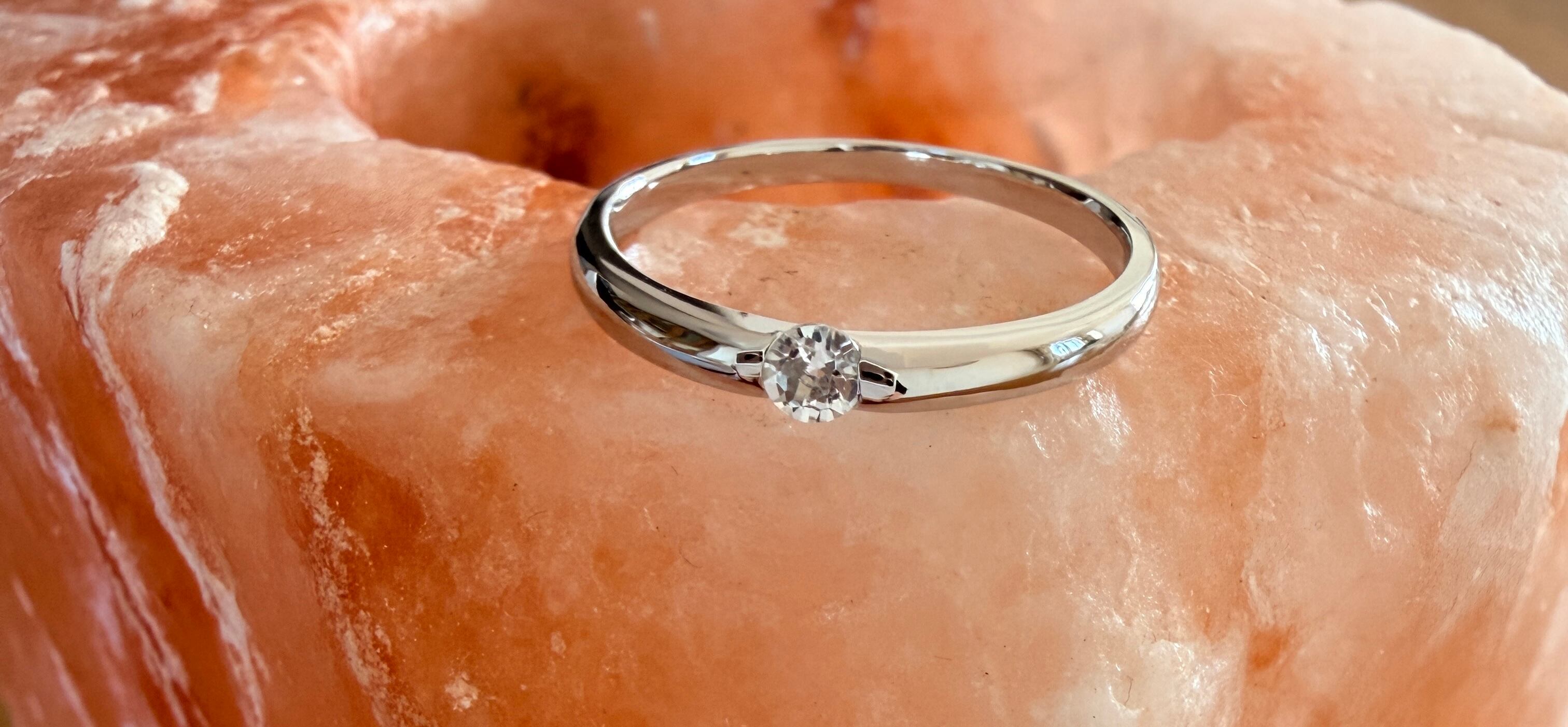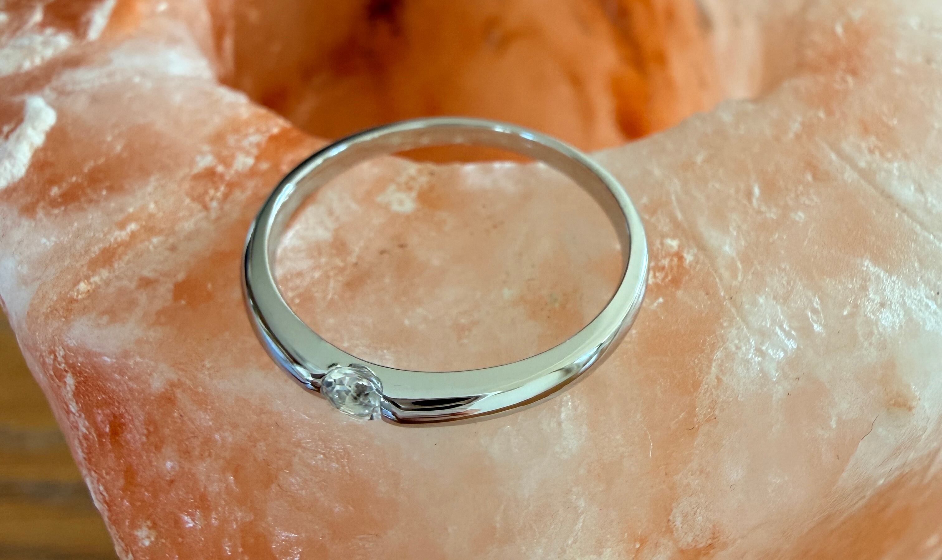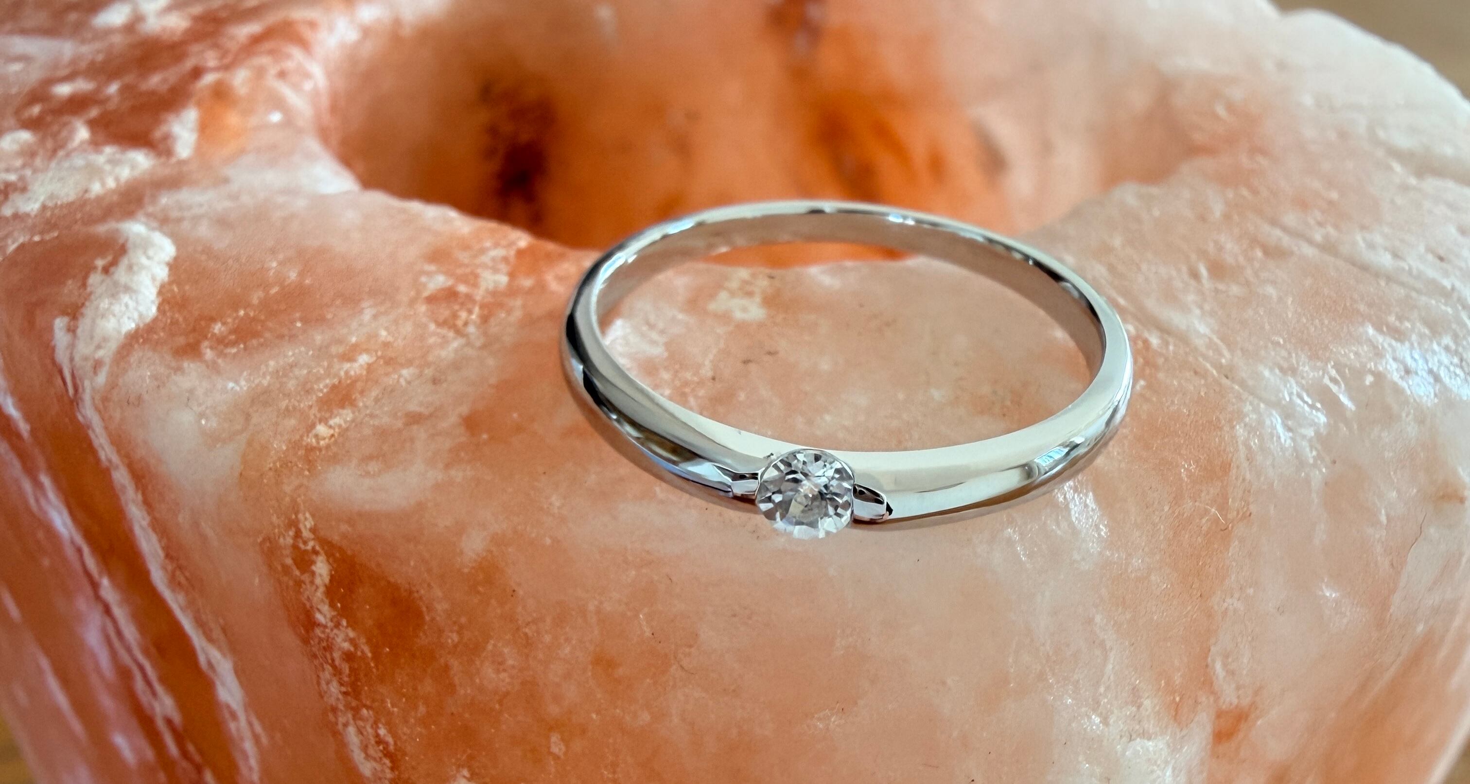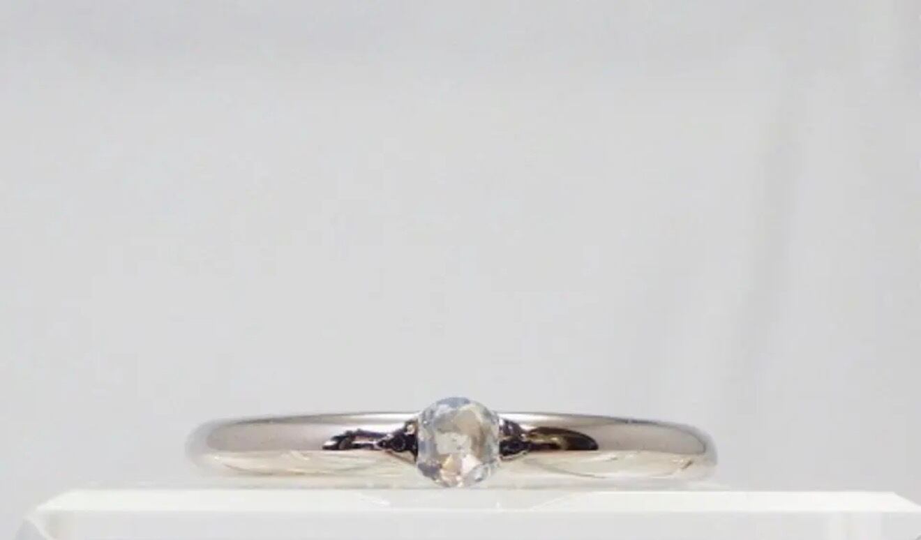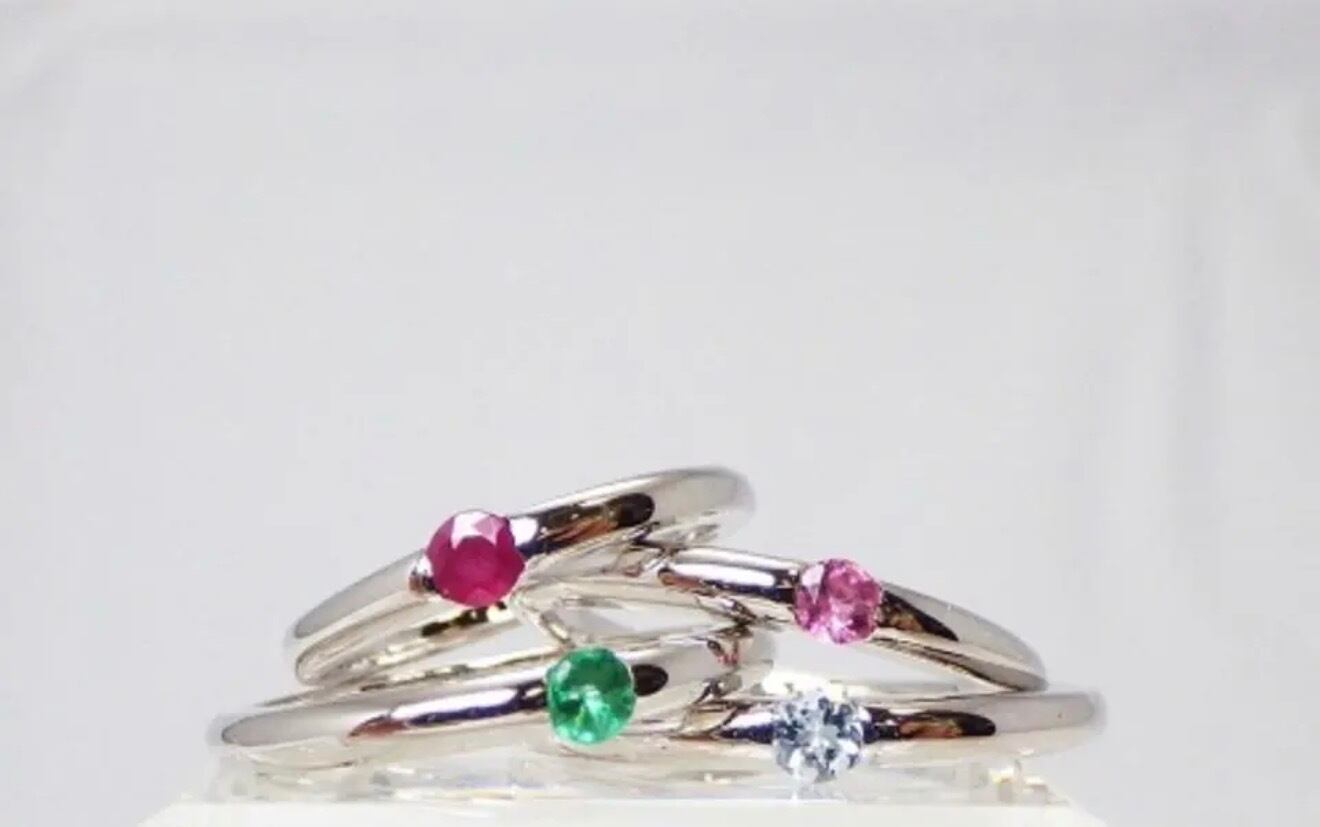 3mmの天然石を1ピース挟むように留めた、シンプルなリングです。