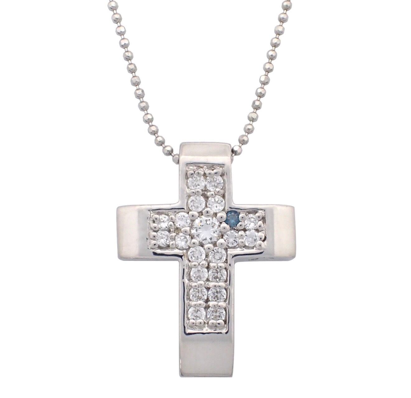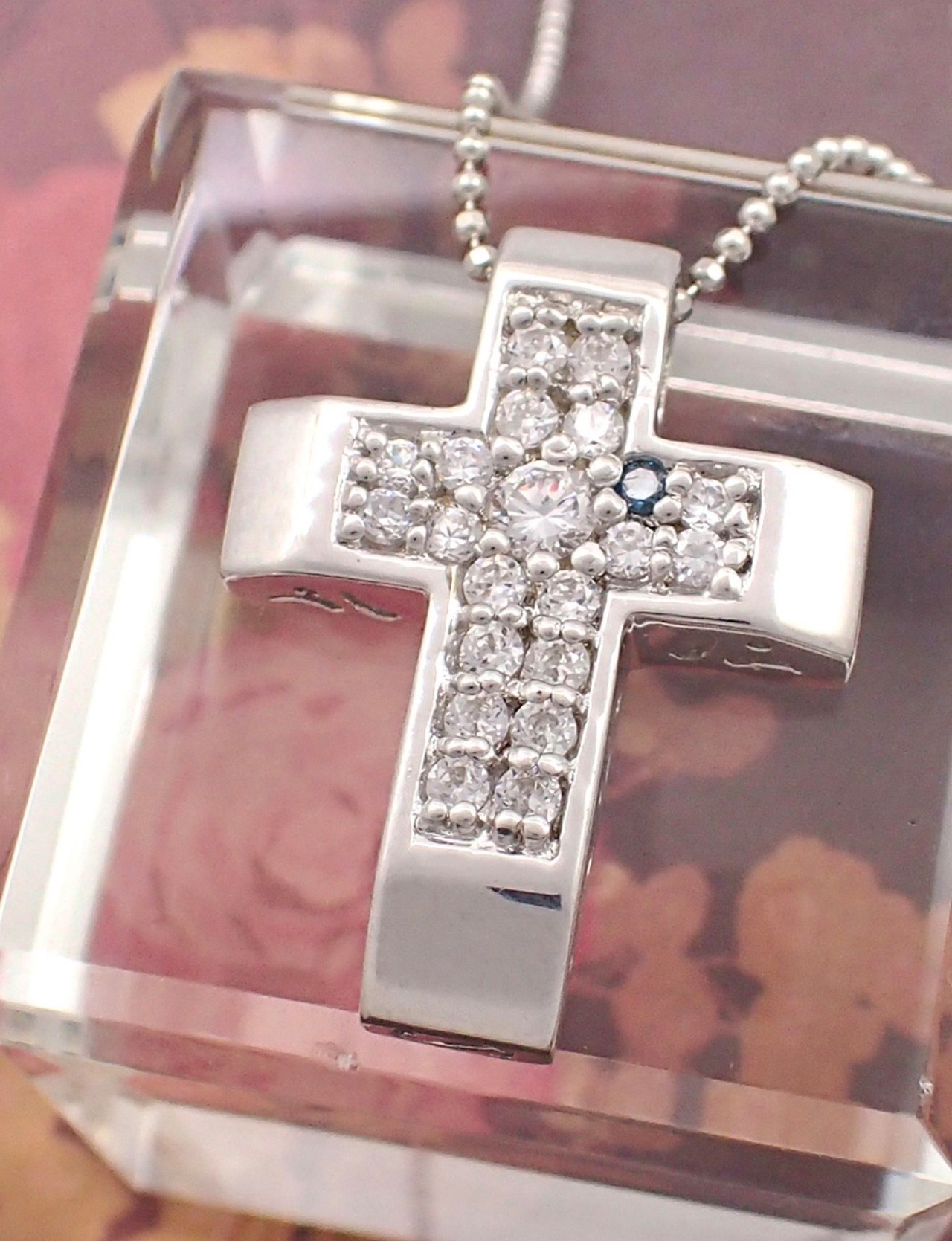 ブルーダイヤ入り クロスダイヤモンドネックレス — さりげないブルーが映える大人クロス
