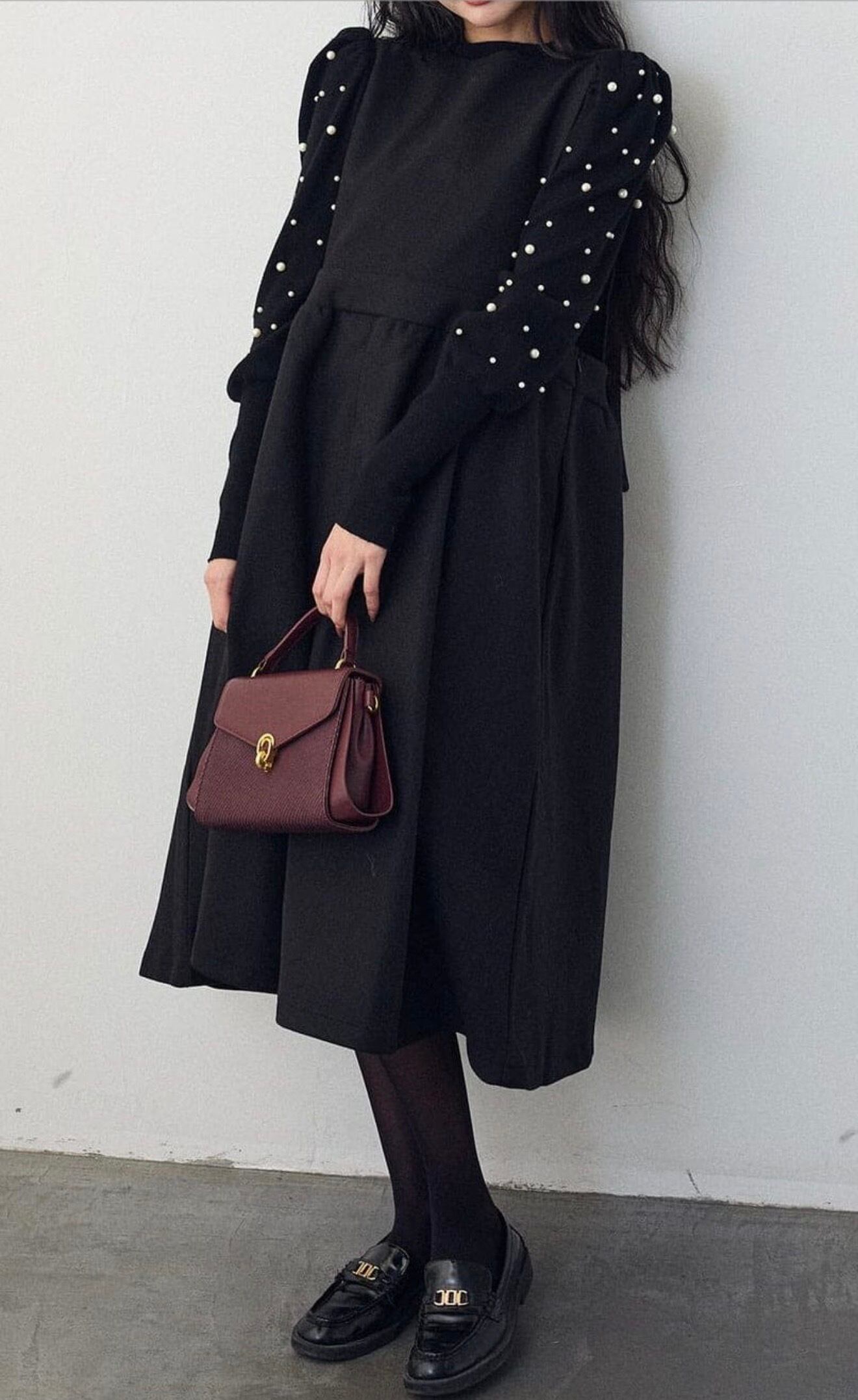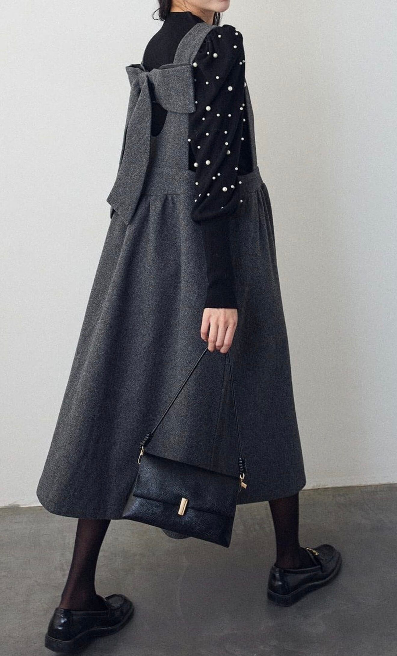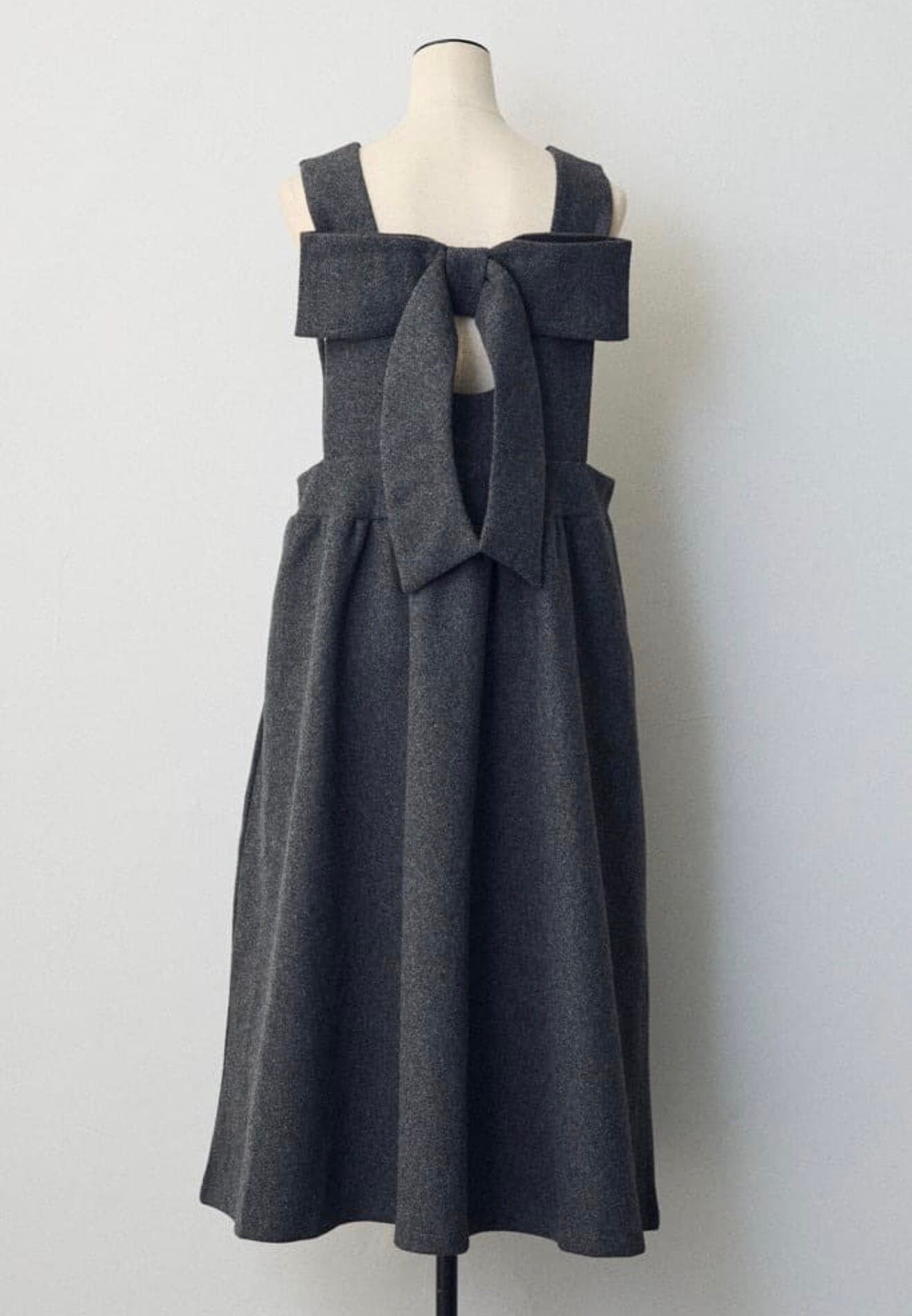 背中に結んだ大きなリボンが印象的なジャンパースカート。