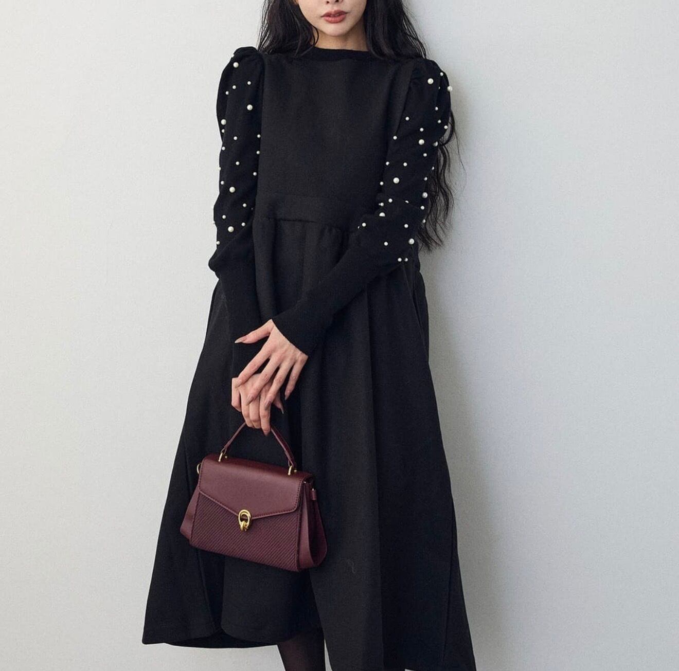 ブラウスやニット、カットソーとのレイヤードも楽しめます。