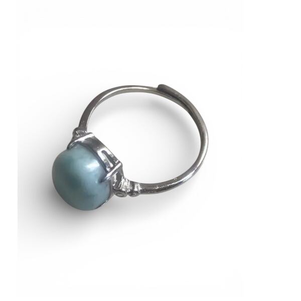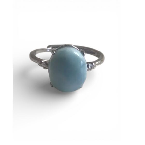 ラリマー部分はおよそ10×8mm前後。リング全体は重ねづけにもひとつ使いにも丁度よいサイズ感です。