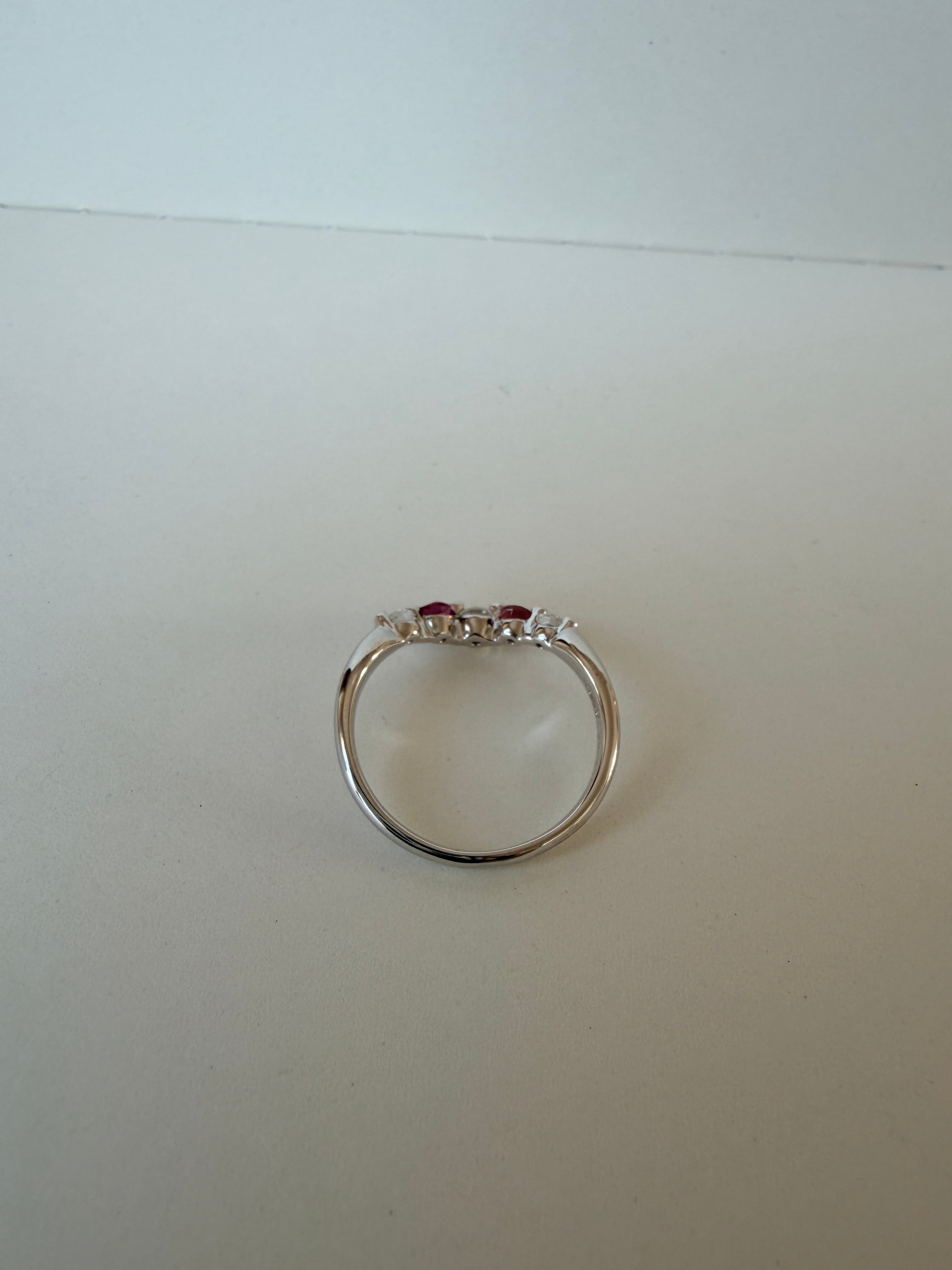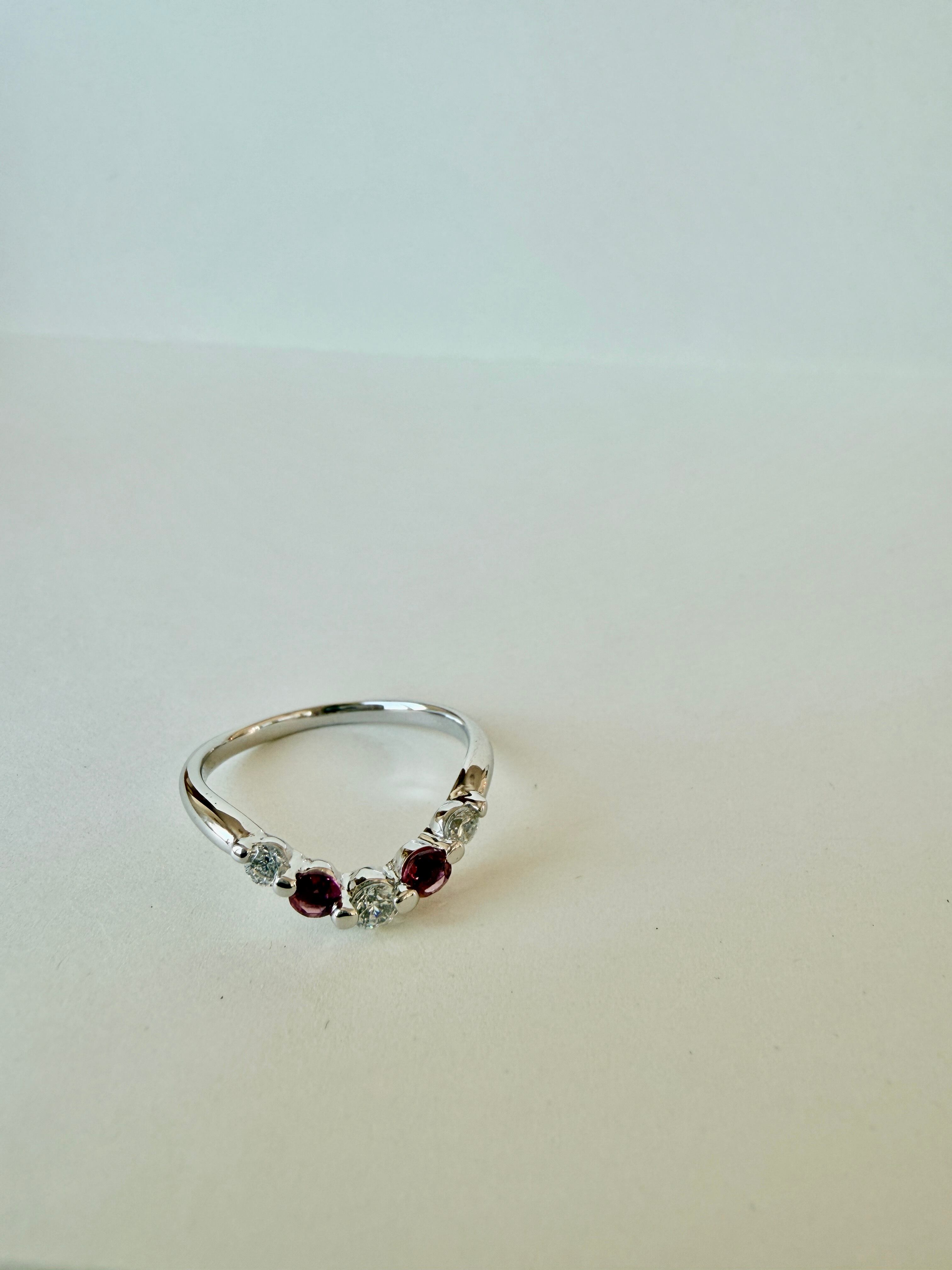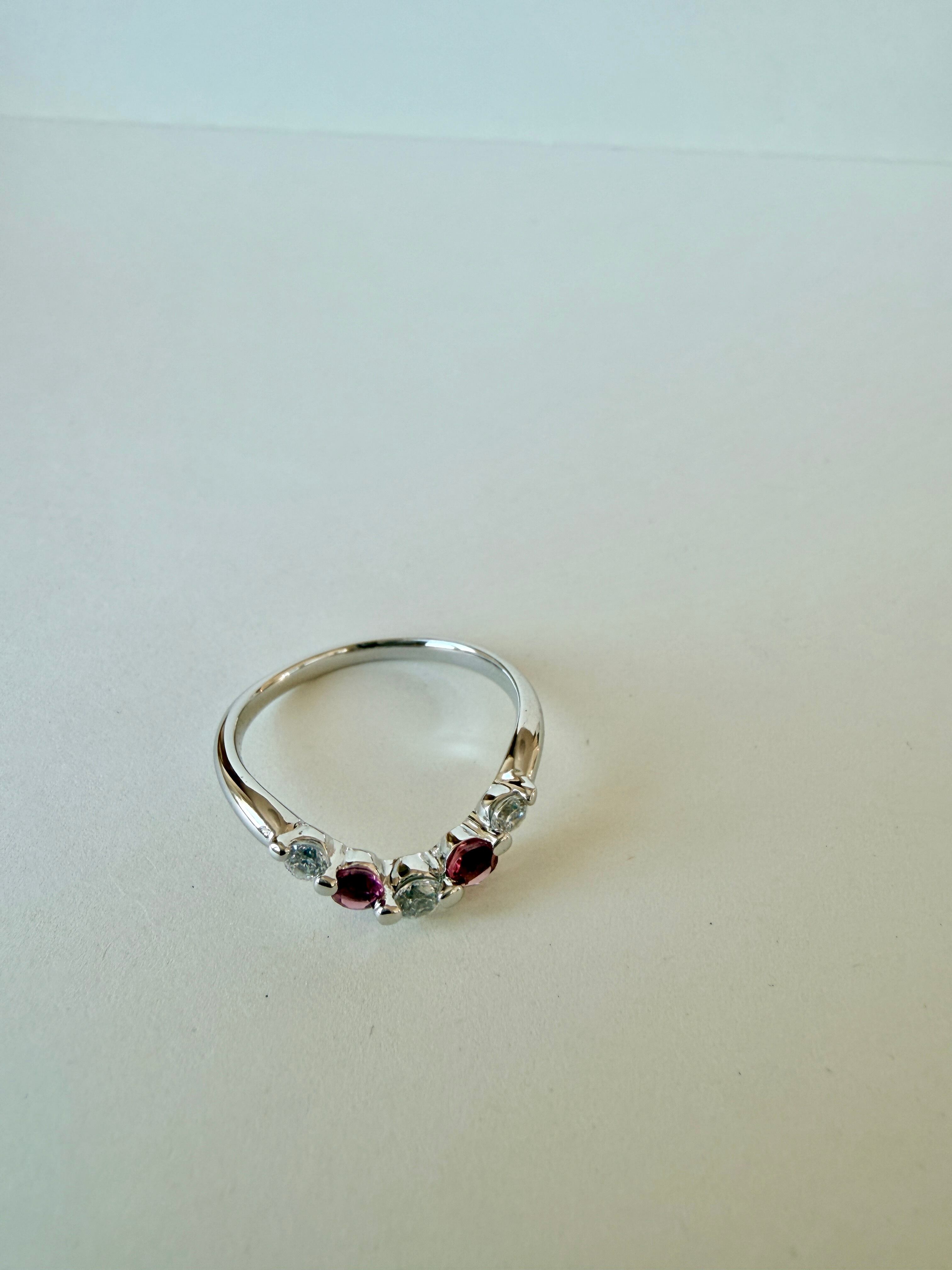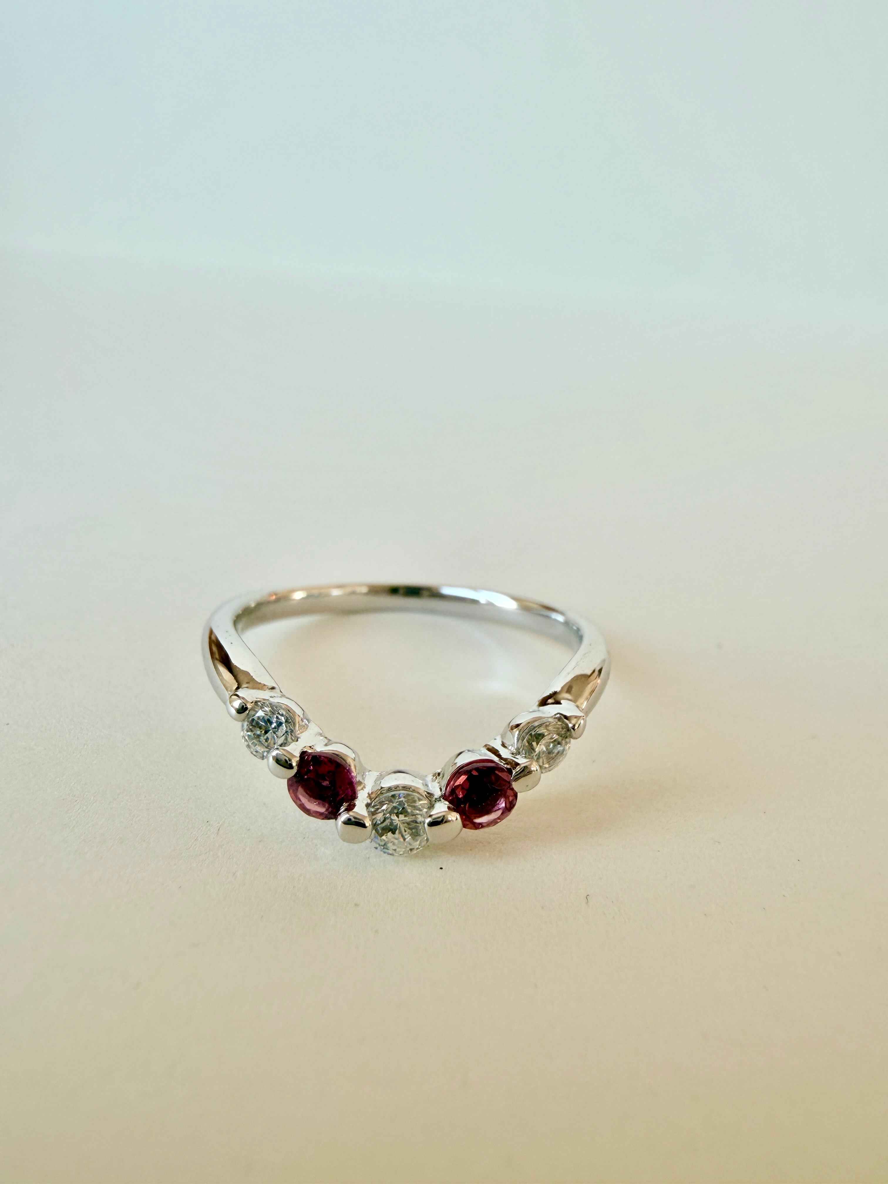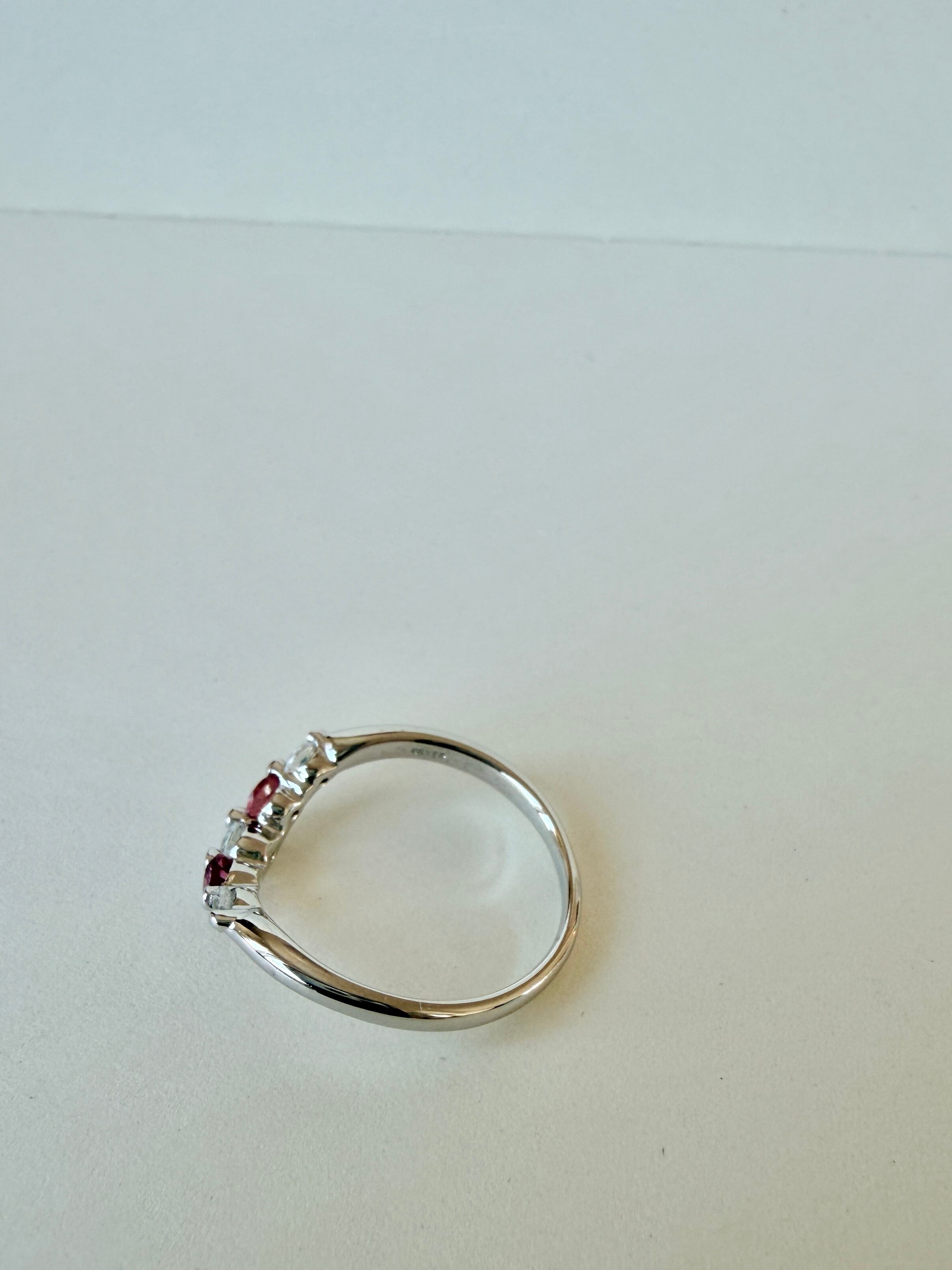 【SILVER925/プラチナ仕上げ】ピンクトルマリン×ダイヤモンド Vラインリング|大人の華奢ジュエリー