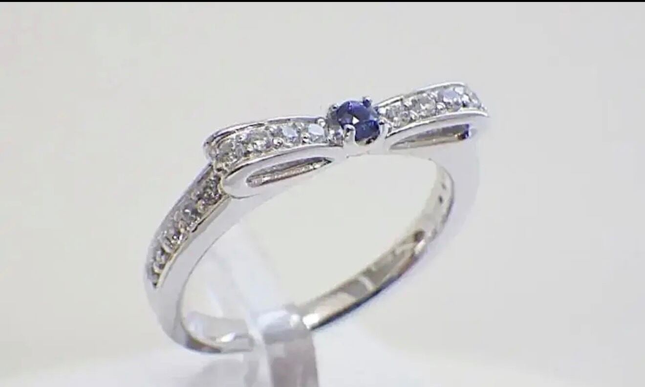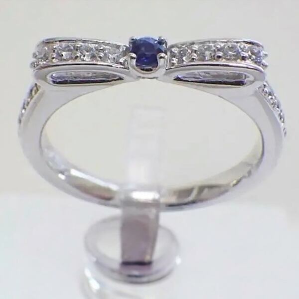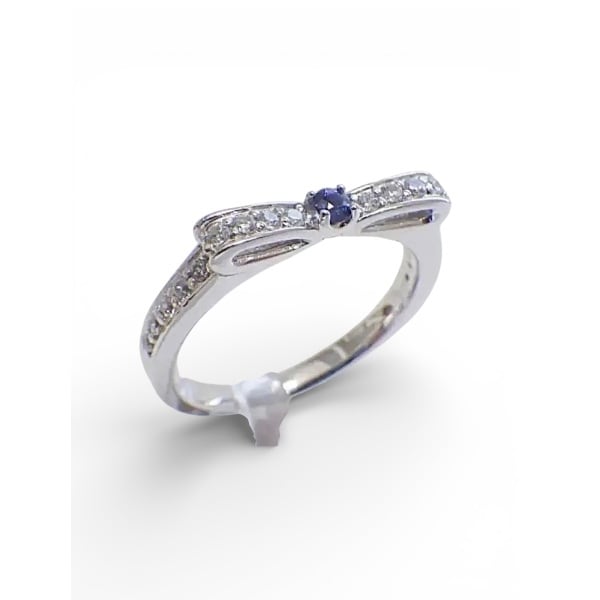 パヴェダイヤモンド&サファイア リボンリング(天然石・シルバー925)