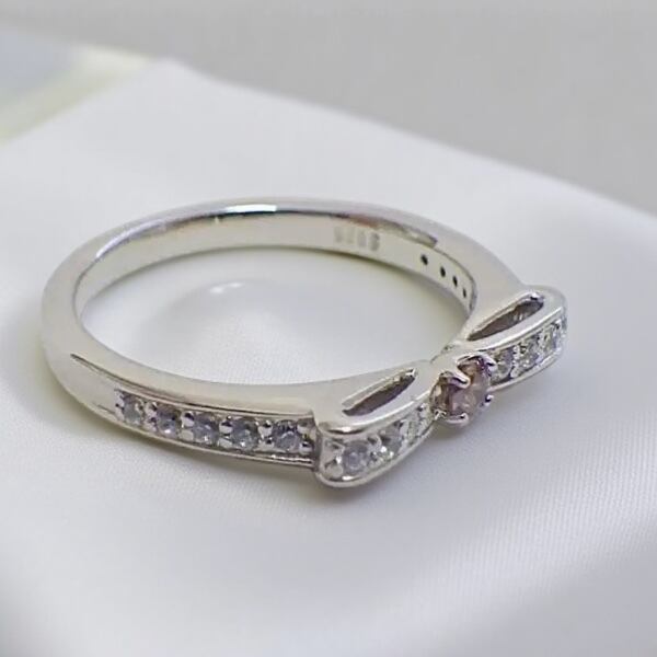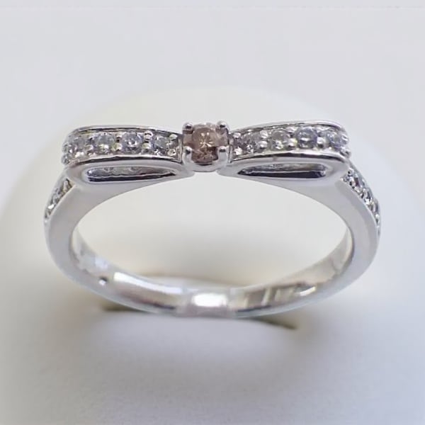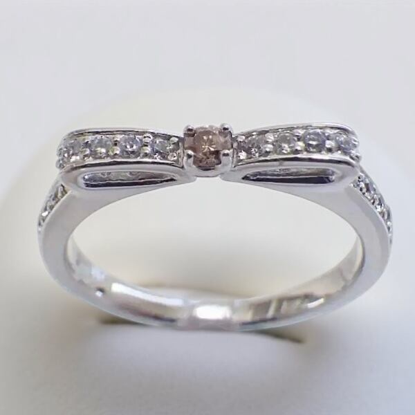 天然石 ブラウンダイヤモンド×ダイヤモンド リボンデザイン リング❤︎シルバー925 指輪 **シルバー925**4月の誕生石リボンデザインリング《ブラウンダイヤ》**