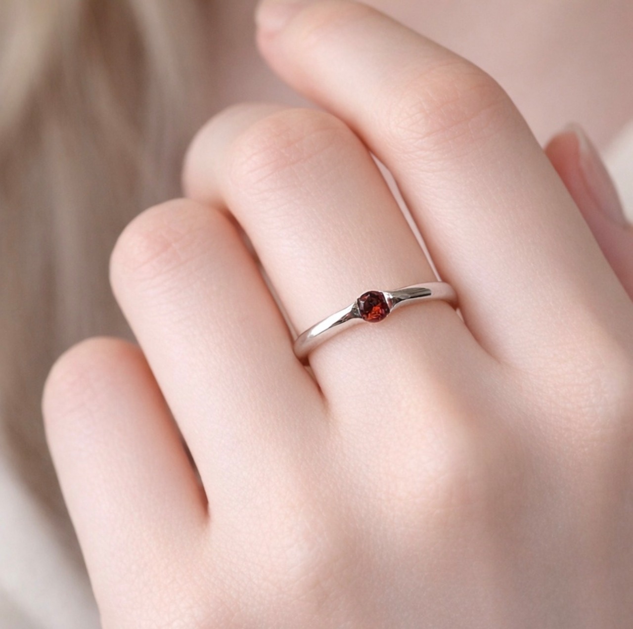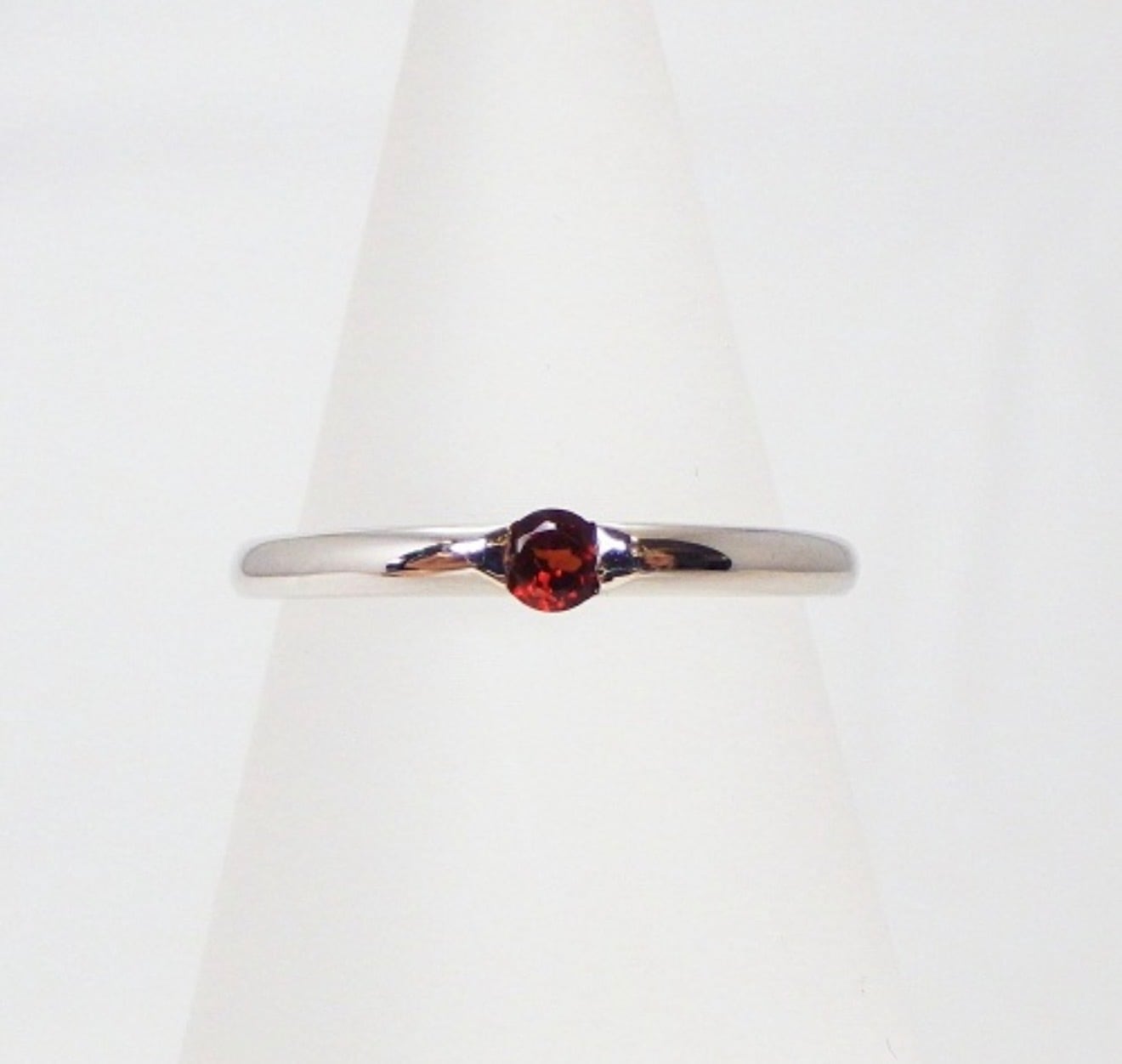 ガーネット 一粒リング|3mm 天然石リング シルバー925・プラチナコーティング|華奢で上品な誕生石リング|3号〜18号・天然石変更オーダー可能