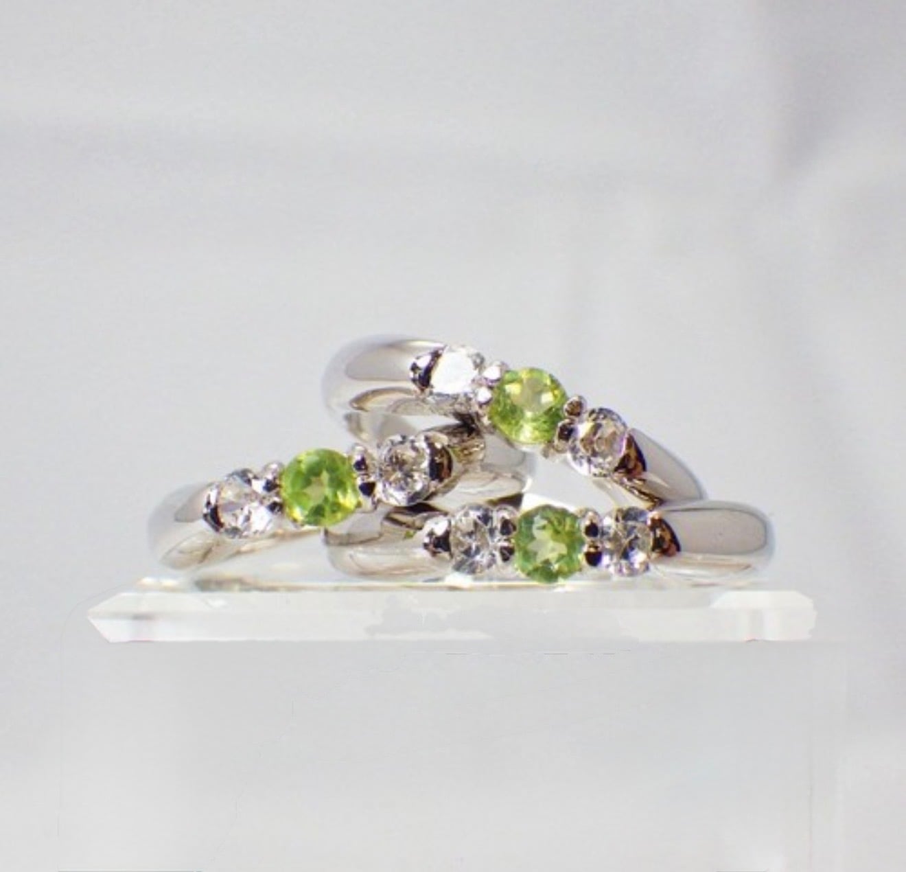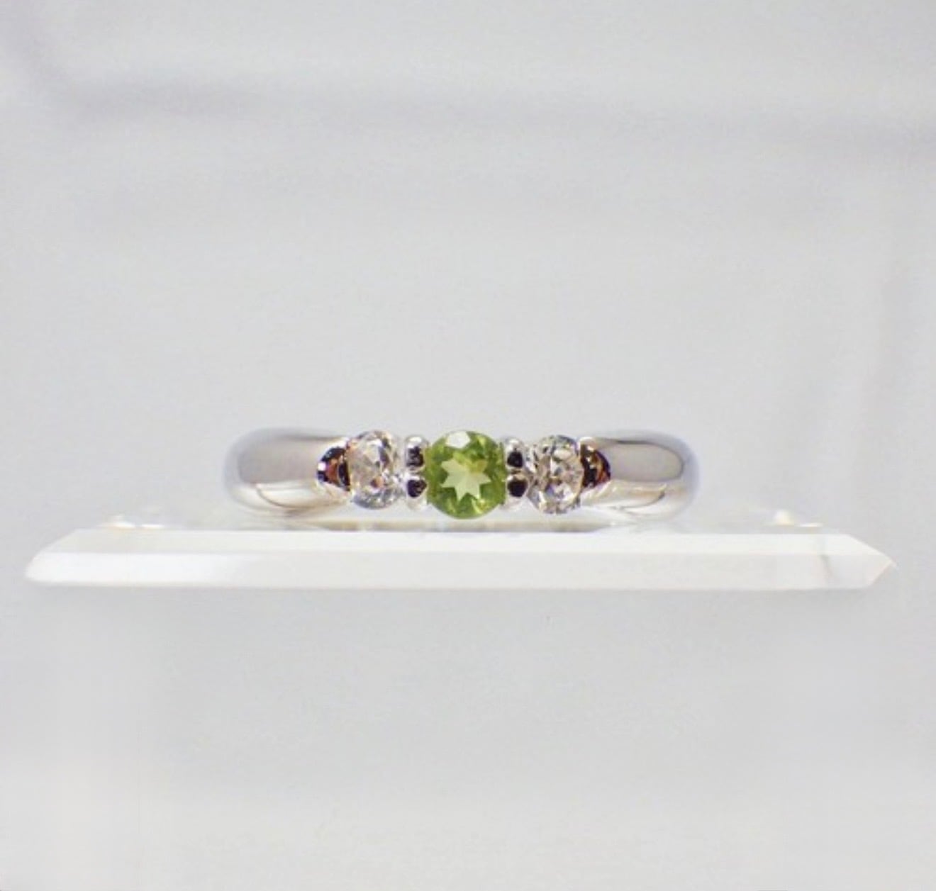 ペリドット×ダイヤモンド 3石リング|8月誕生石の天然石リング|シルバー925・華奢で上品な指輪