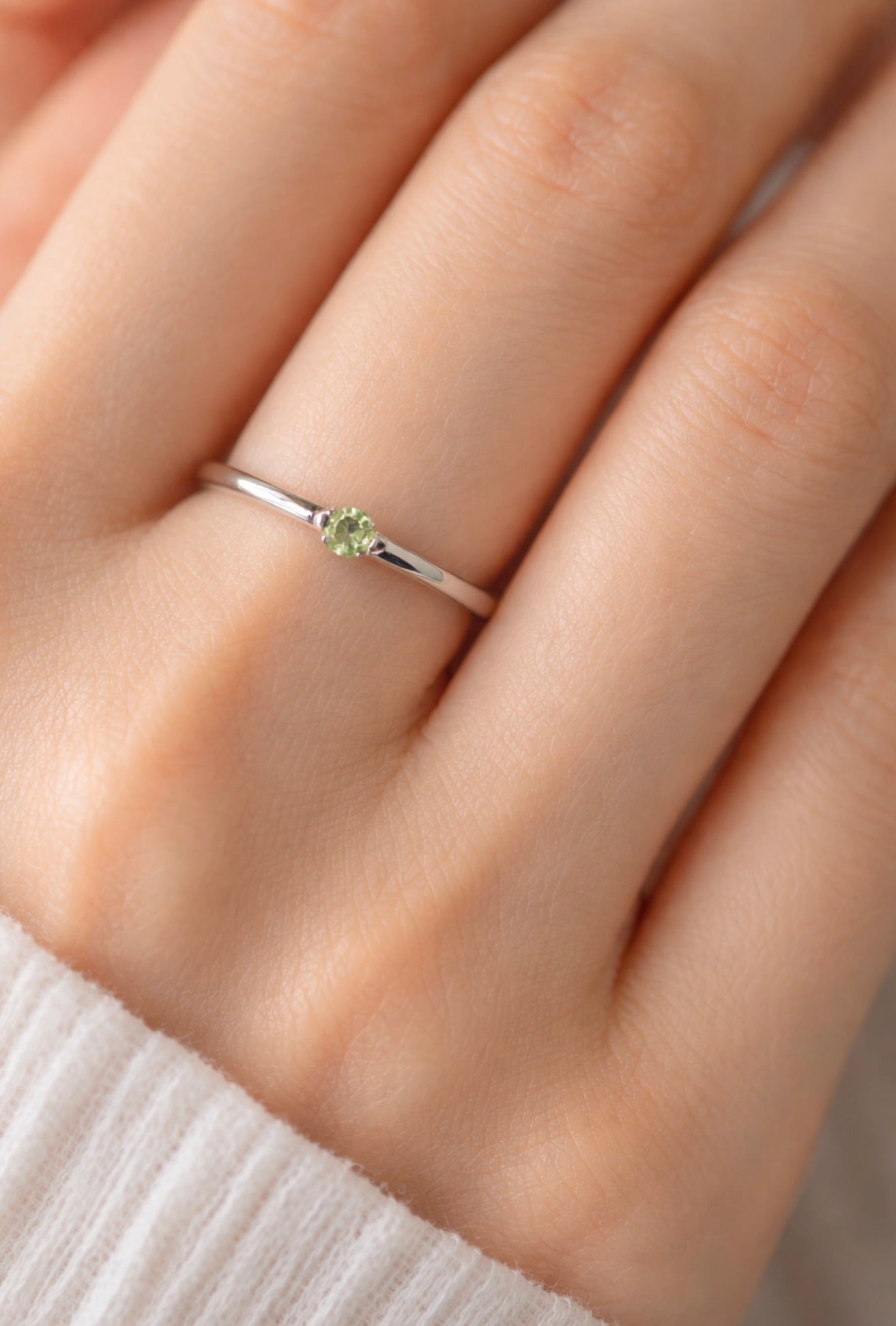 ペリドット 一粒リング|8月誕生石 天然石リング 3mm|華奢リング シルバー925|誕生石オーダー可能
