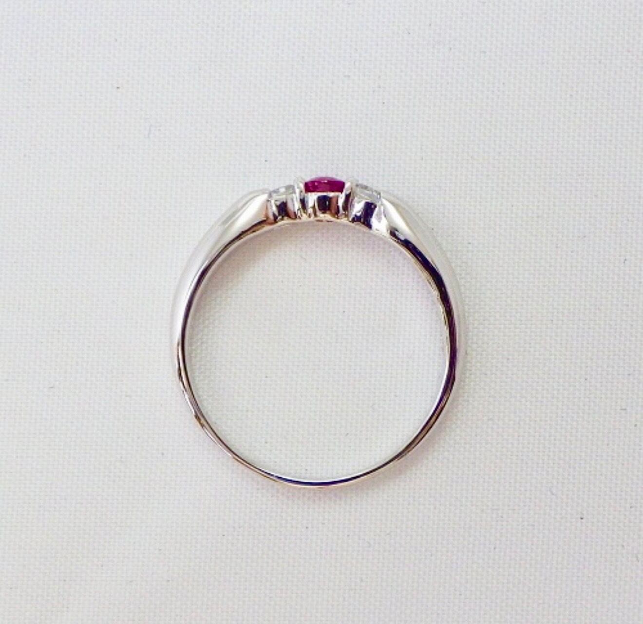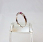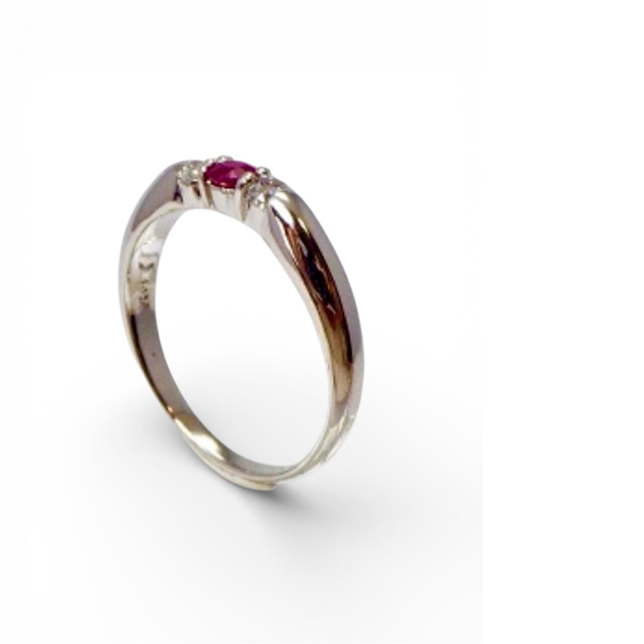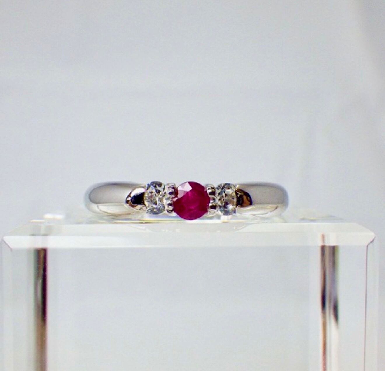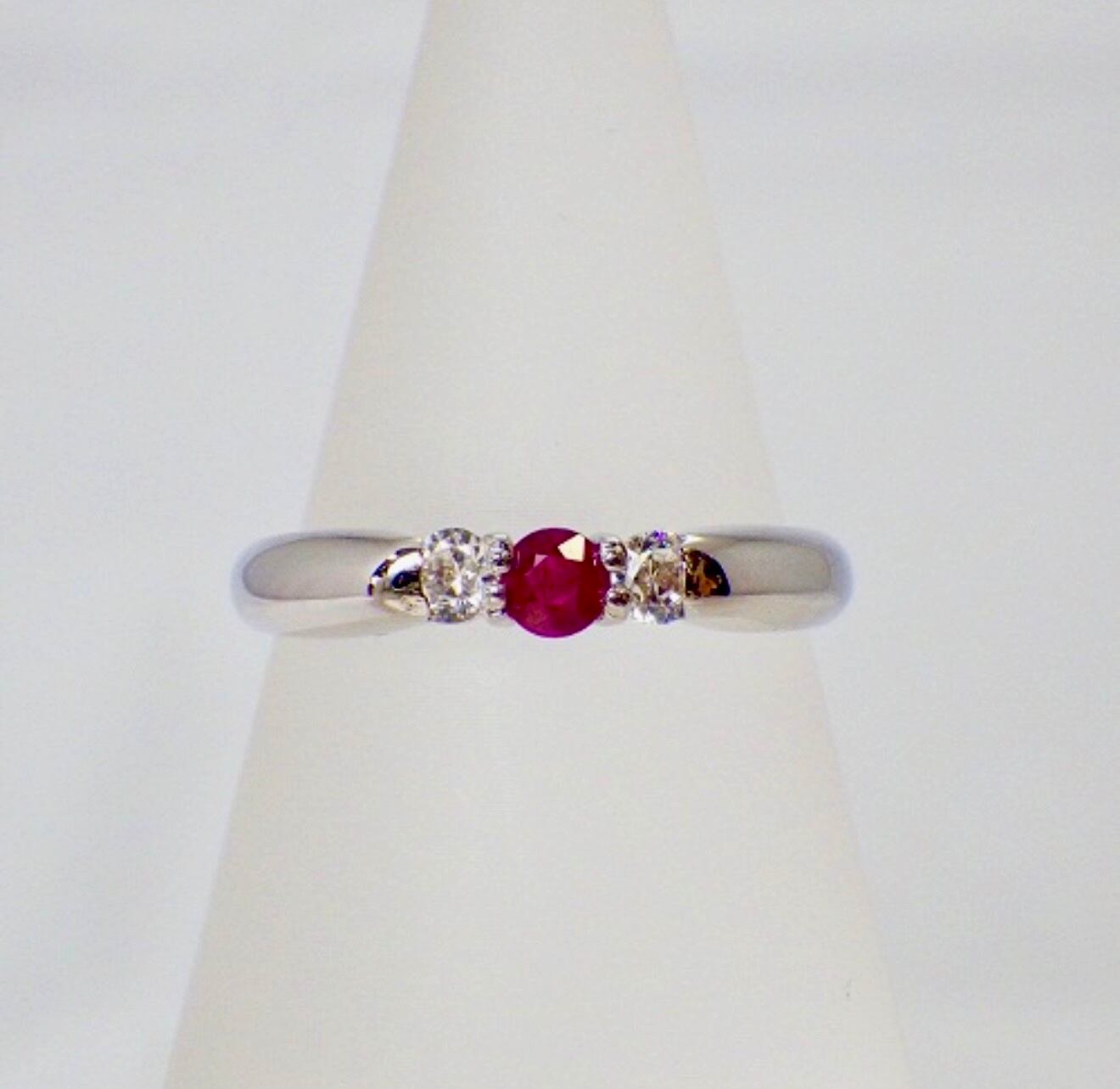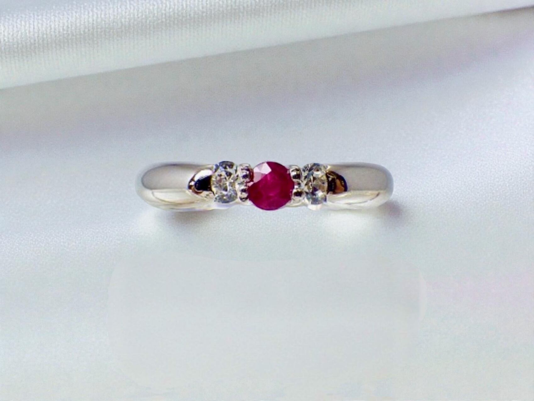3mmの天然ルビーを中心に、さりげなく輝くダイヤモンドを2石あしらい、